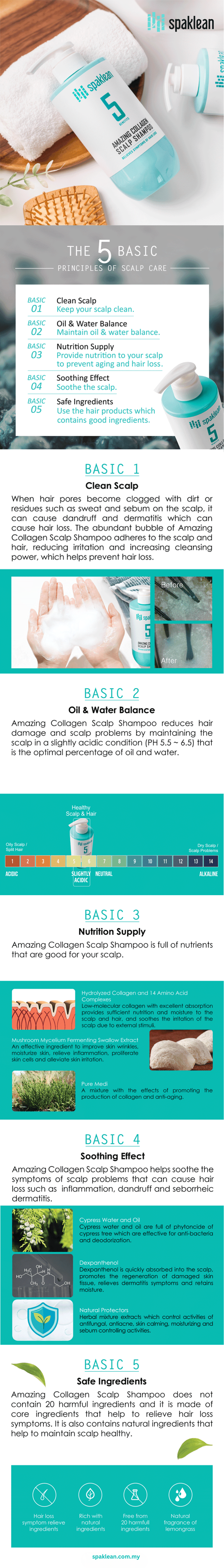 Amazing Collagen Scalp Shampoo eliminates harmful ingredients and uses key ingredients that are good for the scalp